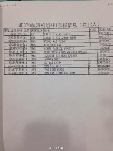 当地时间2014年3月8日,一辆福克F27飞机抵达菲律宾普林塞萨港安东尼奥·包蒂斯塔空军基地,菲律宾空军救援人员抵达集结地区。菲律宾军方将派出舰船和侦察飞机参与寻找失联的马来西亚航空公司客机。 当地时间3月8日,马来西亚航空公司一架载有239人的航班,在离开马来西亚首都吉隆坡后,与空中管制中心失去联系,据悉这架飞机的目的地是北京。航空公司在一份声明中表示,航班“MH370”是在当地时间凌晨2点40分与管制中心失去联系的,本应于北京时间6:30抵达北京。 当地时间2014年3月8日,菲律宾普林塞萨港安东尼奥·包蒂斯塔空军基地,联合搜救司令部正在进行讨论。?菲律宾即将前往菲国巴拉望岛西南部海域开展搜索行动。 马航称,机上乘客来自14个国家,有154名中国人,其中1人来自台湾,1人为婴儿。马来西亚38人,印度尼西亚7人,印度5人,澳大利亚6人,法国4人,美国3人(含1名婴儿),新西兰2人,乌克兰2人,加拿大2人,俄罗斯1人,意大利1人,荷兰1人,奥地利1人。 越南飞机在中国南海发现明显油迹 中国网3月8日讯 马来西亚航空公司一架波音777客机(MH370)3月8日凌晨在从吉隆坡飞往北京的途中失去联系。据日本共同社报道,越南官员称,越方搜救飞机在客机失踪海域发现了明显的一片油带。 3月8日凌晨,马来西亚航空公司称,一架载有227名乘客和12名机组成员的客机失去联系。飞机型号为波音777-200,飞机当地时间8日0:41从吉隆坡国际机场起飞,原计划6:30左右降落在北京国际机场。 据悉,失去联系的飞机上有154名中国人,在越南曾与空管联系,之后失联。 马来西亚失联航班乘客名单公布 马来西亚失联航班乘客名单公布 马来西亚失联航班乘客名单公布 马来西亚失联航班乘客名单公布 马来西亚失联航班乘客名单公布 马来西亚失联航班乘客名单公布 中新网3月8日电 据路透社报道,马来西亚首相纳吉布8日说,美国派出飞机和海军舰艇,协助搜索援助马来西亚航空MH370航班失联事故。 马来西亚航空公司代码为MH370吉隆坡至北京航班客机于吉隆坡时间8日0时41分从吉隆坡出发,原定于北京时间6时30分抵达。客机于吉隆坡时间2时40分左右同马来西亚苏邦空中交通控制中心失去联络。 多国参与搜救马航失联客机 【最新消息:新加坡空军协助搜寻】联合早报记者报道,新加坡空军部队已派遣一架C130大力士运输机协助搜寻失联的马航客机。 中新社吉隆坡3月8日电 马来西亚交通部长希山慕丁8日在吉隆坡国际机场HMAHMA饭店举行的新闻发布会上说,马来西亚政府已联系中国、越南、菲律宾、印度尼西亚有关海事部门参与搜救。 希山慕丁通报,失联客机失事地点为北纬065515,东经1033443范围。马来西亚海军、空军已出动在此区域展开搜索。(完) |