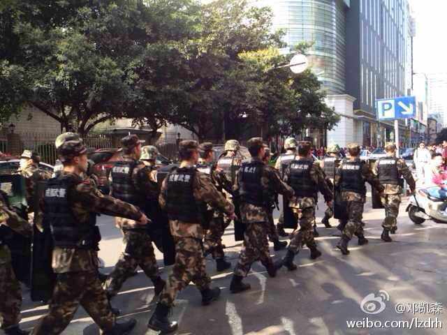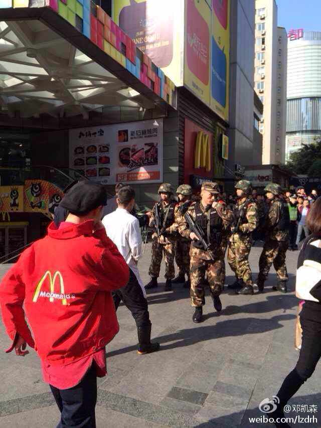 | 2014年3月14日,四川成都,下午4点半,成都市著名步行街春熙路一带,数百人在不明原因情况下狂奔。据一位现场目击者称,事发时他正在商场内试衣服,突然听到有人喊“砍人了”,随后商场内所有人四处奔跑。17时许,成都市公安局官方微博发布通告称,“刚才有人通过网络发布不实信息。经核实,春熙路及周边地区没有发生任何危害公共安全的案件,也没有任何人员伤亡。 华西都市报: #最新情况#【春熙路混乱 系有人造谣所致】今天下午4点半,有数百人在春熙路一线往蜀都大道奔跑。经记者核实,现场警方确认,系有人造谣“有人砍人”所致。受此影响,数家商家已经关闭。 新京报讯 今天下午4点半,多位网友发微博称,成都市著名步行街春熙路一带,数百人在不明原因情况下狂奔。据一位现场目击者称,事发时他正在商场内试衣服,突然听到有人喊“砍人了”,随后商场内所有人“四处奔跑,有的往外面跑,有的往楼上跑”。他称,一楼多家商户马上关门。 据多位网友拍摄的现场图片显示,当地公安机关随后出动了警力封锁了相应路段,其中还有身着防爆服的警察。 17时许,成都市公安局官方微博发布通告称,“刚才有人通过网络发布不实信息。经核实,春熙路及周边地区没有发生任何危害公共安全的案件,也没有任何人员伤亡。目前,警方已对相关情况开展调查”。而据一位目击者援引现场警方说法称,狂奔是现场有人造谣“有人砍人”导致。 |