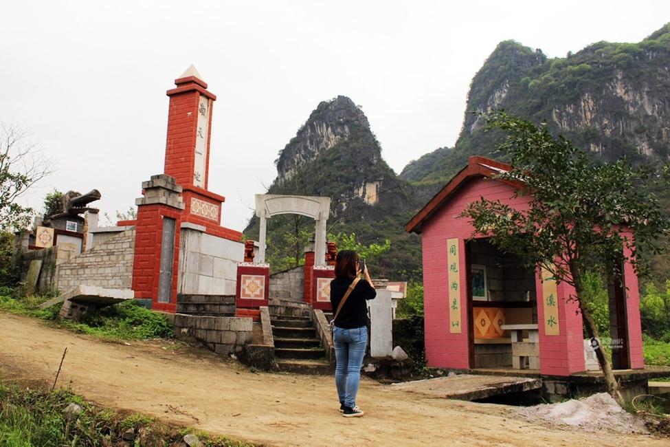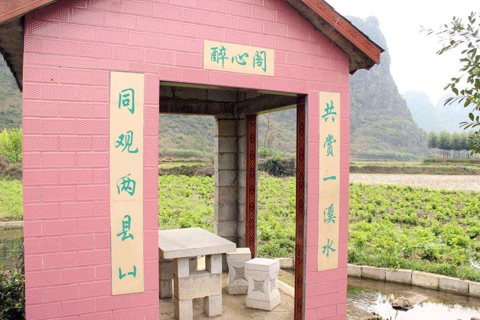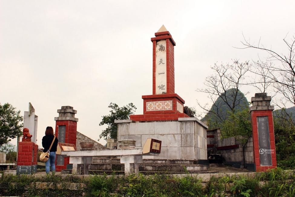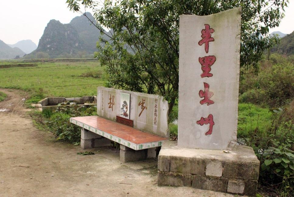 2014年03月27日,广西柳州市柳江县里高镇保仁村周塘屯。有一座被当地人称作“土豪活人墓”的墓地,是一名62岁的谭志定老人花了六年时间为自己修建的。 整个像是名胜古迹一般。“土豪墓”由凉亭、台阶、石柱、围墙、祭坛、墓室和石碑组成,墓前有一座红色的凉亭,内有石桌和石凳,凉亭前有潺潺的溪水流过。墓室四周以及基座的石板上,雕刻或镶嵌着不少精美的字画,正后方围墙上有一个石制龙头,似乎在翘首仰望着石碑。红色的石碑高约六七米,下刻“万古城”,上刻“南天一地”,碑顶为黄色的金字塔状尖顶。 在这座墓右侧路边,还立有一块约两米高的石碑,上书“半里出州”四个大字,旁边还有一张装饰有字画的石凳。 |
