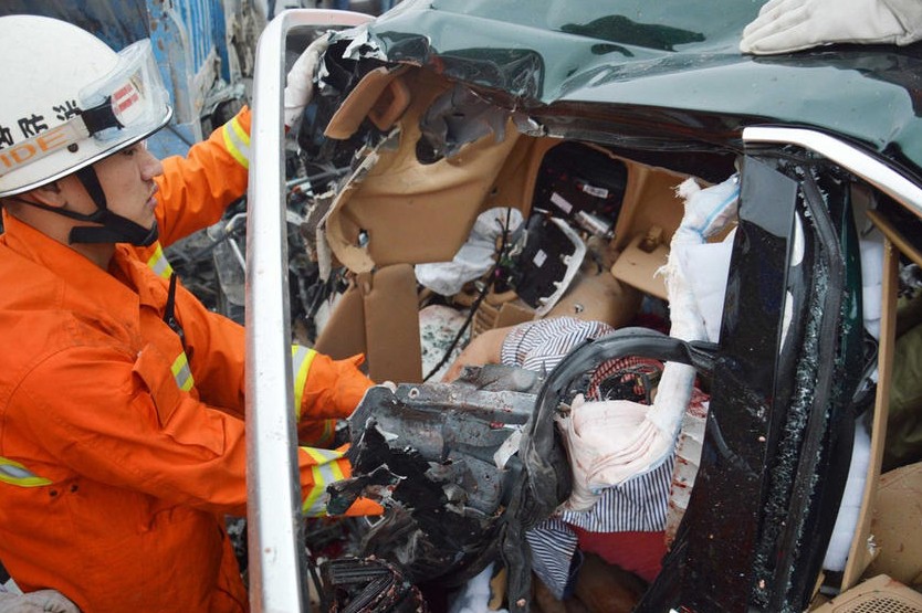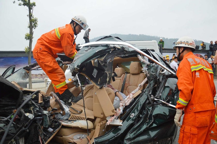 : 3月30日17时左右,贵阳市北京东路,一辆保时捷卡宴越野车与一辆大货车发生追尾,6人被困越野车中。随后赶到的救援人员破拆车辆,将被困人员救出。经现场救援人员确认,有5人已经死亡,其中包括一名儿童,1名受伤人员 ...