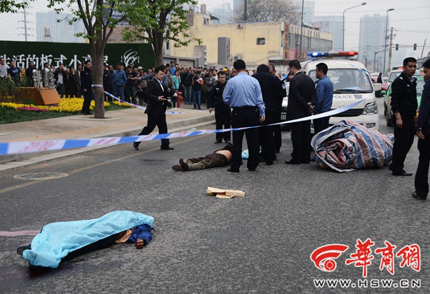 4月10日下午14时许,西安市街头发生一起伤人事件,两人当场死亡。雁塔警方向记者证实,目前已确认该案已致2死2伤,现场已被警方封锁,案情正在进一步调查当中。 10日下午13时40分许,在西安市西万路与丈八路路口发生一起伤人事件,事发地附近有一个劳务市场,人流密集,车流也较大。在机动车道上,两名男子躺在地上,现场血迹斑斑。有目击者称,参与纠纷的共有4人,彼此发生争执,但原因不详。一男子将另一男子刺死后随即自杀。而受伤的2人中,其中包括一名女子李某,还有一个劝架男子张某,他们均为在劳务市场揽活的民工。事件发生后,当地警方迅速出动,赶往事发地,并拉起警戒线,封锁现场。雁塔警方10日下午向记者证实,涉案4人中,2死2伤。而受伤的2人中,为1名女子和1名男子。目前正在对此案进行调查。 目击者称,参与打架的一共有4人,穿蓝衣的死者名叫小南,事发前与女工友李某在劳务市场等活。由于早上两人没有等到生意,准备骑车离开返回。周围目击者猜测,两人骑车时疑与灰衣男子发生剐蹭后发生冲突。灰衣男子拔出随身携带的弹簧刀将小南刺死,李某的臀部中刀。对于纠纷的起因,还有一种说法,是说冲突双方原本就认识,是因为打牌起的纠纷。图为事发现场。 据了解,小南在事发前曾与一同等活儿的工友讲述自己的生活情况,小南的父亲脑溢血正在住院,他有两个女儿,老大12岁,老二8岁。小南每日在事发地点等待活计,他干的是贴瓷砖,女子李某打零工。“若等到活儿,男的一天200元,女的一天七八十元。”围观者说。 10日下午,受伤的李某(女)躺在521医院的病床上。她称,先被捅死的男子是蒲某,平时被人称为小南。下午小南见无生意,用电动车带着张某,准备离开劳务市场,走到离劳务市场大约十余米的地方,小南与灰衣男子发生了冲突。双方开始殴打,灰衣男子拿出一弹簧刀,刀尖很锋利,李某上前劝架,刚说出“求求你,别伤人”后,就被灰衣男子捅在了臀部 。 李某说,自己与小南和张某经常在此揽活,也经常配合一起合作干活。当自己看到小南看见被灰衣男子捅伤,满地的鲜血,自己赶紧拨打报警电话,但是因为害怕手抖的不行。在劝架过程中,还没来得及抬头看灰衣男子的长相,就被灰衣男子捅伤臀部。图为警方从灰衣男子身上搜寻到的遗物。 警方在现场调查。 一包烟,一个手机,百余元钱,警方从小南(蓝衣死者)身上找到的遗物。 民警拍照记录案发现场,事发后一个小时后已有7辆警车抵达现场。 警车抵达事发现场。 警方封锁了事发区域。 事发现场。 围观的民众。 |