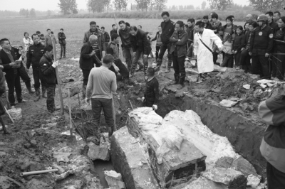4月21日,记者从瞿家湾镇获悉,该镇在实施土地平整项目施工时发现一座古墓。 据记者了解,该古墓位于瞿家湾镇月池村十组青龙岭(离瞿家湾镇约3.5公里处),南为伏虎堤,东为小殷墩,西为双凤咀,北为玉带河(系63年所挖)。明清为殷姓生活居落址,有殷家荘48里七朝门之一传说。 洪湖市文物局、荆州市文物局在获知古墓消息后,第一时间赶赴现场进行保护。在进行了抢救性考古发掘后,发现该墓长3.6米,宽1.6米,厚1.3米,为白膏土,夹杂青砂石、白啐石等,密度大,较硬,如一大块混泥土,经文物专家初步推断,该墓葬为明清时期所葬,是江汉平原同等古墓保存最完好的墓棺之一。 |