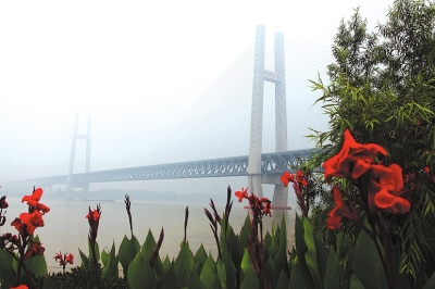 这是6月16日拍摄的晨雾笼罩下黄冈长江大桥。当日,公铁两用斜拉桥湖北黄冈长江大桥公路面通车,下层高速铁路将于6月18日正式通车。黄冈长江大桥全长约4千米,设计为双层桥面,下层为双线高速铁路,上层为四车道高速公路,主桥采用双塔双索面钢桁梁斜拉桥方案,其主跨567米,为至今世界公铁两用桥最大主跨度。黄冈长江大桥建成后,将实现大别山革命老区湖北黄冈市与武汉从公路、铁路及轨道交通方面全方位的“无缝对接”。