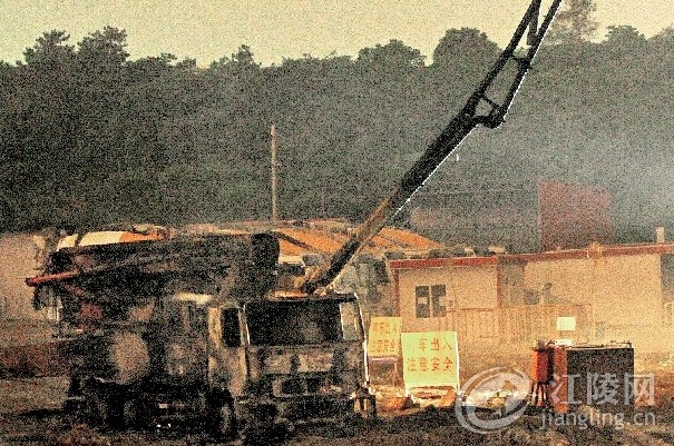事发京港澳高速武汉西出口附近一搅拌站 一司机被电击伤 昨晚8时许,318国道京港澳高速武汉西出口附近,中交二航局一处砼专供站站内,一辆价值400万元左右的水泥泵车,在站内展开长臂清洗时,不慎碰到电线被引燃,烧成了空架子,两名操作者中有一人被电击伤。 图为:事发现场 昨晚9时许,记者赶到现场时,大火刚刚被扑灭。一辆长臂水泥泵车停在洗车区域,上方约二十米处有两根电线通过,泵车已经被烧成空壳,长臂折叠悬在空中。站内已经停电,四周一团漆黑,几十名工友在周边三五成群地讨论此事。 据一工友介绍,晚8时许,工作人员正在清洗水泥泵车,有两名司机在车内操作,将长臂伸展开约十几米时,不慎碰到了上方的电线,车头瞬间冒出火花。车上两名司机见状立即跳车逃出,但走路都站不稳,估计遭到了电击,被几名工友搀扶到一旁并开车送往医院。“当时火光冲天,把周围都照得像白天一样,”该工友称,因为失火泵车可能带电,众工友虽然拿来了站内的灭火器材,但还是不敢贸然靠近。消防官兵赶到现场后,因被告知长臂碰到了电线,也不敢轻易用水扑救。众人只能眼睁睁看着这辆价值约400万元的水泥泵车一点点烧毁。直到烧至车轮,轮胎爆了后,车身也降低了,长臂才离开了高压线。随后,消防官兵立即将火扑灭。 据工友介绍,把洗车区域放在两根电线下面确实不合适,存在安全隐患。虽然泵车长臂全部展开约有50米,但是之前从来没有发生过这样的情况,这次伸展了20米左右就出事,也是操作人员粗心大意了。两名被送往医院的工友中,有一人被电击伤。 |
