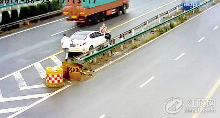 : 6月30日,高警荆门大队民警对近日辖区高速公路上的监控视频进行整理时,发现6月25日下午5时10分许,二广高速襄荆段与荆宜高速分岔路口处,竟有一辆白色轿车正在违法倒车。为了躲避监控,两名男子一前一后挡住轿车前 ...