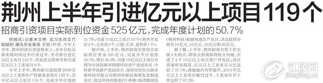 : 荆州上半年引进亿元以上项目119个