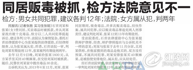 : 同居贩毒被抓 检方法院意见不一