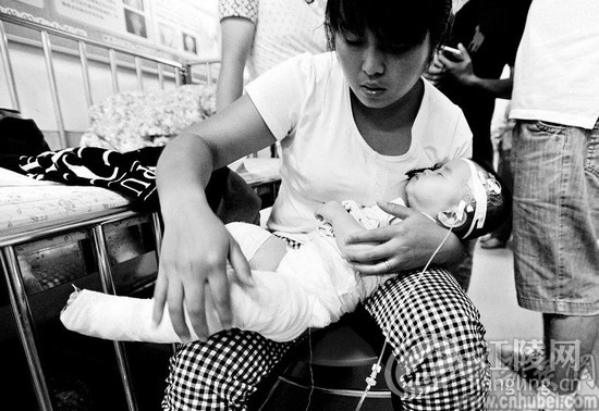 大人仅离开10多秒钟,10个月大的女婴将开水瓶打翻,滚烫的开水将宝宝的双腿烫伤。父母抱着宝宝,拦了一辆的士从盘龙城往武昌的医院赶,哪知遭遇交通拥堵,经电台紧急呼吁,沿途车辆纷纷避让,为宝宝及时得到救治赢得了时间。昨日傍晚,这温情一幕在江城上演。 “有一名10个月大的宝宝被开水烫伤,由一辆车牌号为鄂AXM606的出租车经常青路送往武汉市第三医院,因交通拥堵,请各位驾驶员避让。”昨日傍晚6时30分许,电波里传来一则紧急通知。 此时,在汉口常青路的一辆的士上,10个月大的琳琳被妈妈抱在怀中,哭闹不止。她的爸爸徐庆强守在旁边,心急如焚。 一个半小时前,一场意外让琳琳饱受皮肉之苦。当时,徐庆强在盘龙城领袖城小区的家中做饭,妻子将琳琳抱在客厅地板上玩耍。妻子起身去厨房拿拖把,不过10多秒钟,意外发生了:琳琳自行爬到客厅一角,将放在地面上的开水瓶碰翻。滚烫的开水泼向琳琳的双腿,疼得她哇哇大叫。徐庆强和妻子连忙从厨房跑出来,抱起孩子赶往附近的黄陂区人民医院盘龙城院区。 琳琳烫伤较重,医生敷了药后,建议家长将琳琳送往武汉市第三医院救治。夫妻二人来到马路边,拦了一辆的士往武昌赶。因正值下班高峰期,马路上的车流量大,到了常青路时,交通更显拥堵。“师傅,麻烦快一点。”徐庆强急得快哭了。 于是,的哥许师傅拿起手机,拨打了927交通广播的电话。这则紧急通知随着电波传了出来。交警闻讯迅速上路指挥交通。很快,的士、私家车纷纷避让,让载有琳琳的车先行通过。傍晚6时50分许,许师傅将琳琳送到了武汉市第三医院。 昨晚8时许,记者赶至三医院时,医生已对琳琳进行了检查和包扎,小家伙正打着点滴,安静地睡在妈妈的怀中(如图)。医生介绍,琳琳的大腿与臀部均有烫伤,面积达12%,伤情有待进一步观察。 “今天傍晚,多亏了许师傅这些好心人,真的非常感谢。”徐庆强说。 |