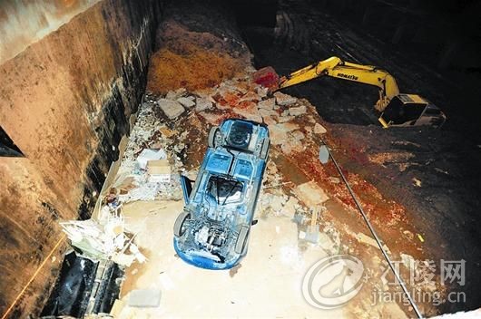图为:小车冲进地下车库前5米深基坑,摔了个四脚朝天 循着小区车库的出口方位标识行驶,开上出口的斜坡,迎接自己的竟是一个巨大的工地基坑。前晚,江夏藏龙岛一小区业主遭遇一场离奇的车祸,爱车一头栽进5米深坑中,摔了个四轮朝天,自己也多处受伤,所幸无生命危险。 昨日,小区开发商承认工作有疏忽,待查清责任将对业主进行赔偿。 汽车掉进小区5米深坑里 前晚11时许,江夏藏龙岛某小区业主刘先生向本报反映,有人开车从小区三期地下车库出来时,掉进了小区六期在建工地深基坑里。 昨日凌晨,记者在刘先生带领下进入该小区三期地下车库。车库规模很大,设施尚未完工,多数车位的地桩还未安装,部分车位上堆放着大量施工设备,导向标识也未安装完善。 刘先生介绍,这个车库还在建设中,此前没有对外开放,这两天因很多二期新业主来收房,地面停车位不够用,物业就将这里临时开放了。 记者跟着出口方位指示牌走了百米左右后,出路已被两扇厚重的铁门拦住,但铁门未锁。推开铁门后左转,就是车库的一个上坡出口,起始处也被三根细木条拦住。走完这段约10米的上坡通道,一位保安正守在通道上方。在他身前,就是一大片工地深基坑,约有5米深,一辆汽车四轮朝天地躺在坑里,一侧A柱几乎被压平(如图)。 保安说,这辆车出事后物业公司封闭了这个出口,并派他到这里值守。 车主惊恐中半天才打开门 随后,记者在小区门口遇到了刚从医院回小区的车主曹先生。惊魂未定的曹先生手臂上有多处擦痕,“胸口和肩膀一直在隐隐作痛,明天还得去做详细检查。” 曹先生介绍,他今年26岁,是小区二期的业主。前日上午,他开着雪佛兰小车到新家整理刚买的家具,因为地面车位已停满,保安让他把车停进三期地下车库。 前晚10点,他开车离开时,看到车位附近有醒目的出口导向标识,循着这个标识,他果然找到出口。因为斜坡和坡顶都没有路灯,他挂着一档带着油门慢慢爬坡,就在他爬到坡顶以为要驶上地面道路时,车头却突然向下一沉,整辆车翻滚了半圈坠落下去。 “只听到砰的一声巨响,随着巨大的撞击,汽车安全气囊打开了。当时我头脑一片空白,整个人都懵了,完全搞不清楚是什么状况。”曹先生心有余悸地回忆,缓了半天后,他发现自己被安全带绑着,倒挂在了车内,因为紧张,摸了半天才摸到开车门的把手,幸运的是车门还能正常打开。他赶紧解开安全带从车中爬了出来。此时,工地上几名工人也赶了过来,帮他报了警。 “出来才发现车库出口竟然正对着工地基坑,地下竟然没有任何警示标识与障碍阻拦,物业公司太不负责了。”曹先生说。 开发商承诺进行赔偿 昨日下午,涉事小区开发商相关负责人表示,公司对此高度重视,立即召开了会议,并对此事展开调查,确定究竟是物业公司还是工地建设方的责任。待调查结果出来后,将对相关责任方采取处罚措施,并要求责任方对业主的人身与财产损失进行赔偿。 她表示,公司已经封闭了出事的车库出口,同时将立即完善车库的各项安全措施,确保不再发生类似事件。 昨日下午,该公司几位工作人员到医院看望了曹先生,当面表达了歉意。 一位交警看了现场照片后说,这样的情况的确非常危险,因为开车上坡时视角朝上,看不见出口外的情况,车主们一定要慎之又慎。“曹先生没有受重伤也和他系了安全带有很大的关系,这也提醒大家一定要养成这样的好习惯。”