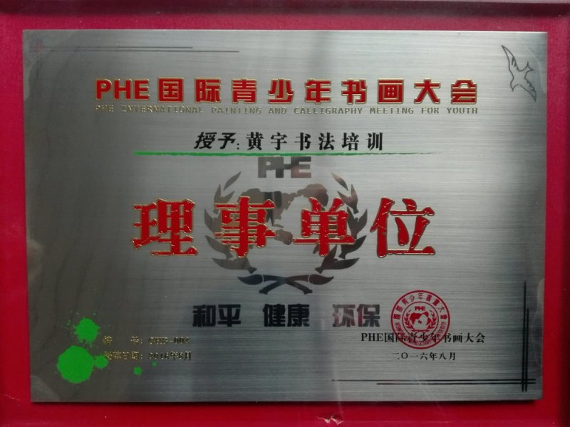 [琴棋书画] 黄宇书法培训被评为理事单位