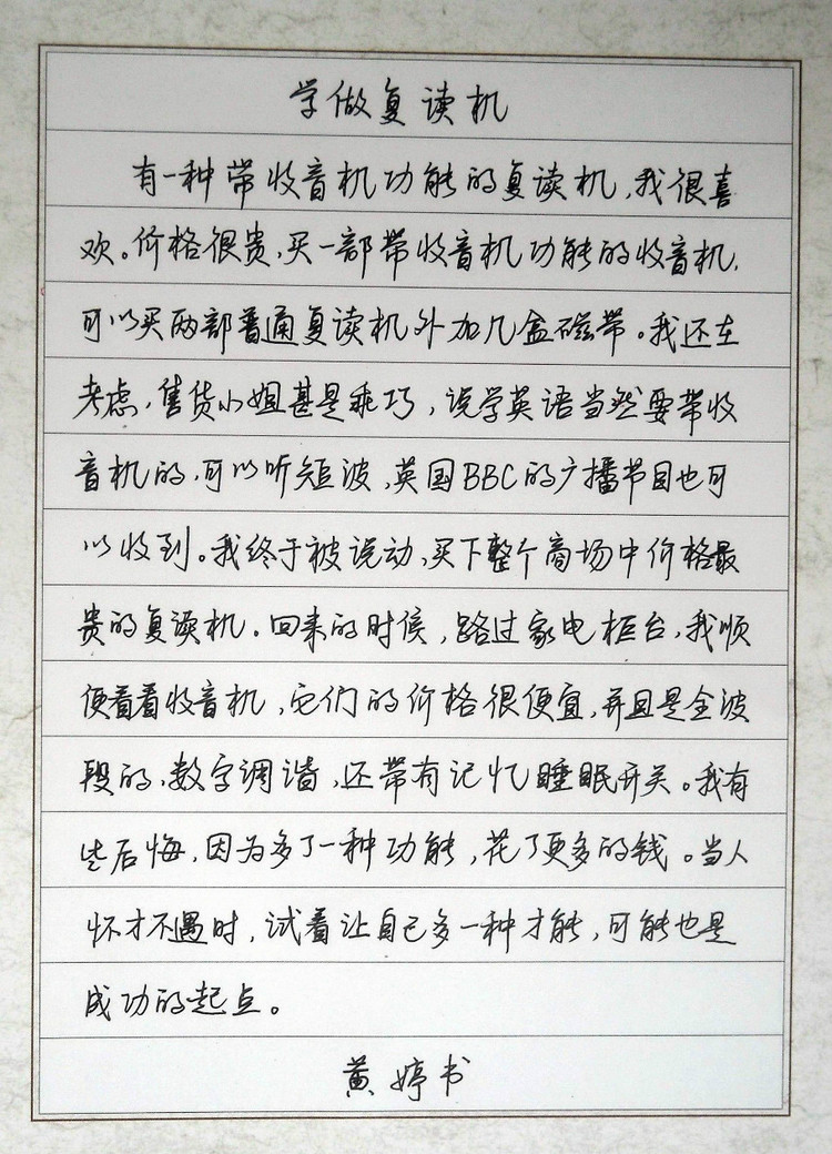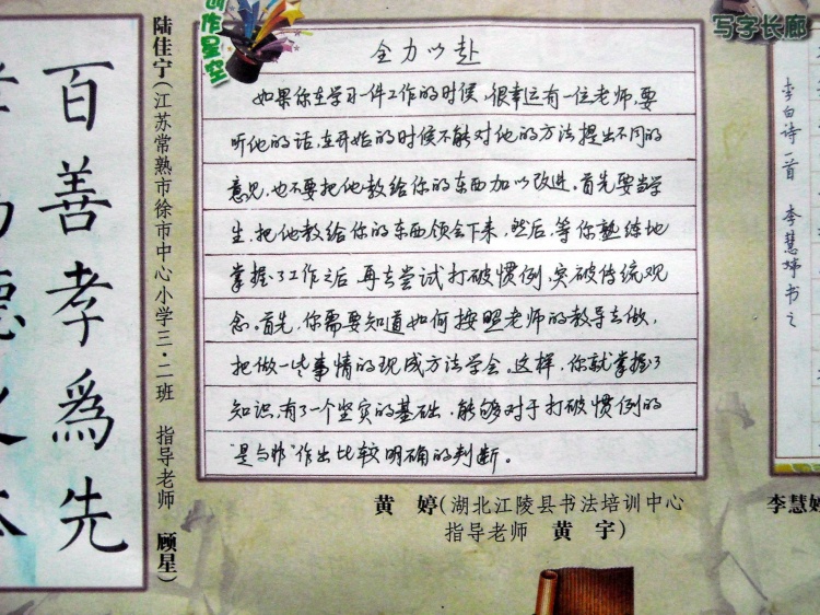 [琴棋书画] 楚风书法培训中心学员 黄婷硬笔实用行书作品 |